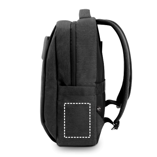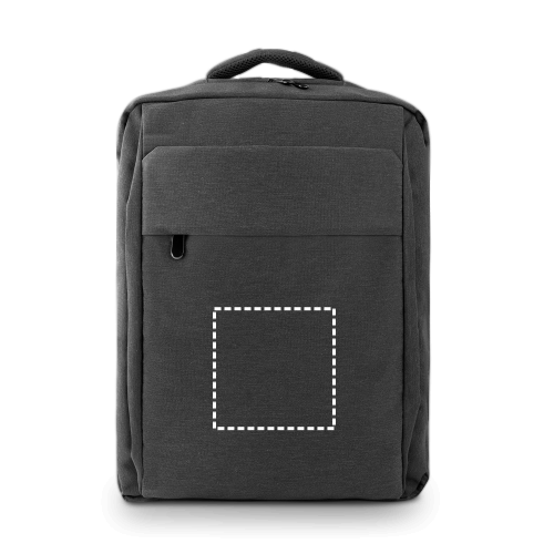 Fully padded laptop backpack in 300D recycled high-density polyester and 210D recycled polyester lining. It has a main compartment for a laptop up to 15'6" and several pockets. 2 front zip pockets and 1 side pocket for carrying your bottle. The back incorporates a trolley strap in case you need it. Capacity up to 18 L. 300 x 430 x 140 mm