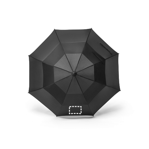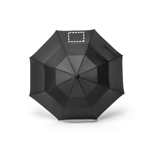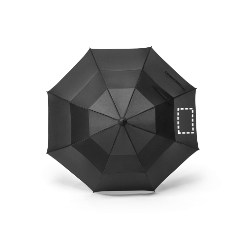 27'5'' umbrella in recycled polyester (100% rPET) 190T pongee. Fibreglass ribs and shaft and handle in ABS (35% recycled). The automatic open umbrella is also windproof. Supplied in bag. ø1224 x 940 mm | Bag: ø83 x 763 mm