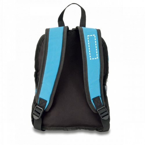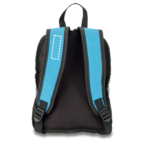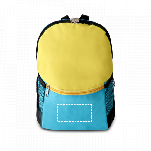 Backpack in 600D with front pocket and 2 side mesh pockets. 240 x 320 x 80 mm