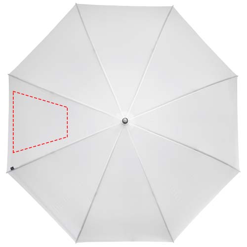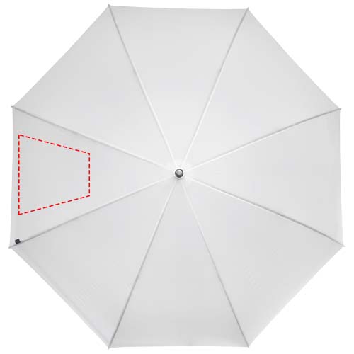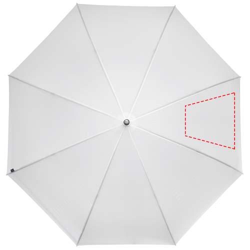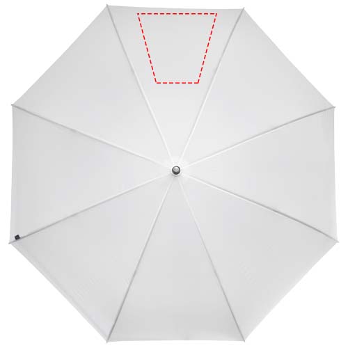 Golf umbrella with a recycled PET pongee polyester canopy fitting 2 persons. The sturdy metal shaft and high quality frame with fibreglass ribs offers maximum flexibility in windy conditions. Together with the wooden handle, tips, and the recycled PET pongee polyester canopy, this umbrella offers a more sustainable choice.