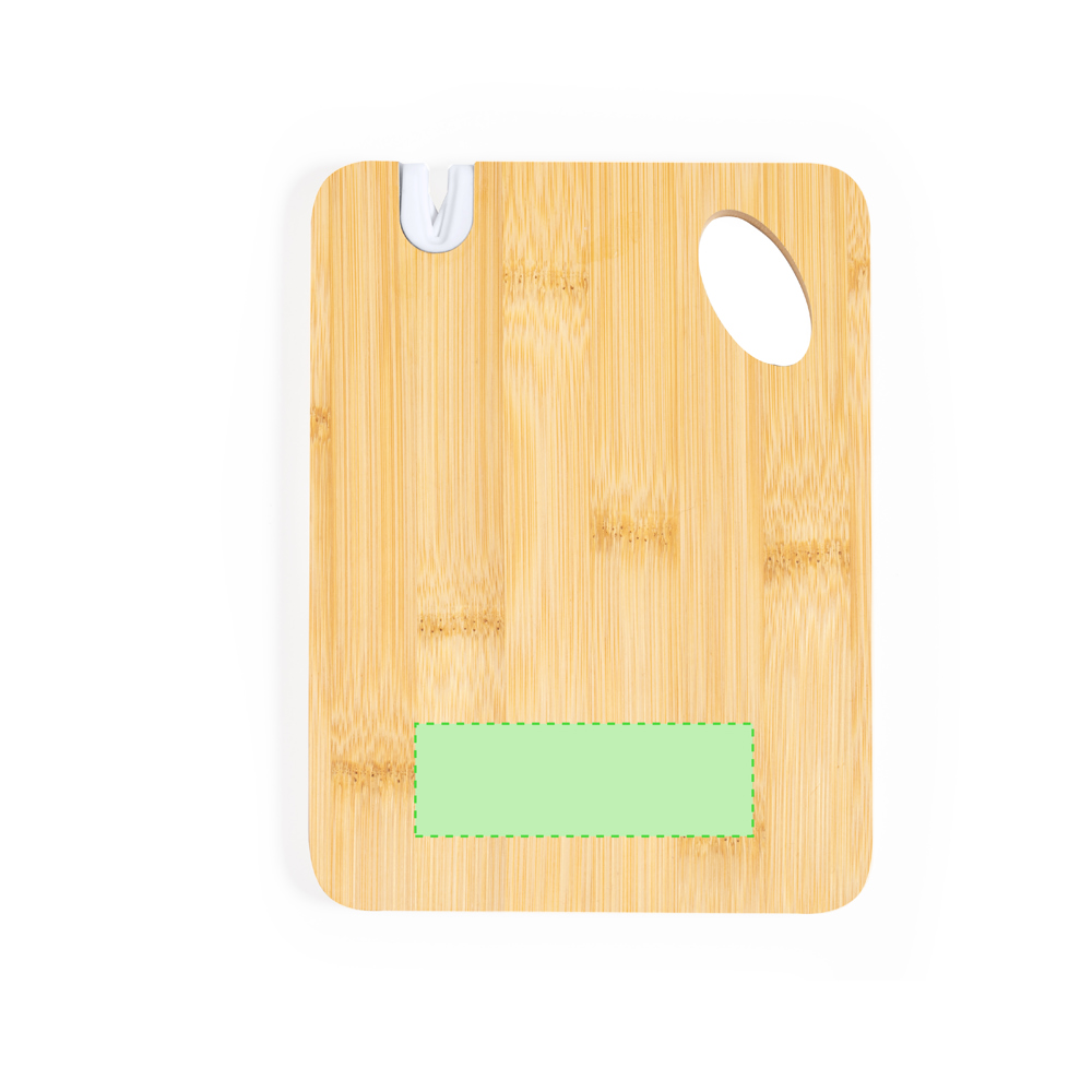 Sharpening board made of soft bamboo. With practical knife sharpener on the edge for an always precise cut and die-cut for easy handling and storage. Individually packed in a kraft design box.Materials such as bamboo encourage the use of natural raw materials, reducing pollutant emissions. In addition, bamboo comes from a highly resistant and versatile plant, with rapid growth and regeneration, making of it an excellent alternative to traditional wood.
